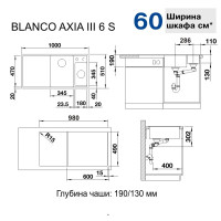 Кухонна мийка Axia III 6 S обладнана двома чашами і додатковим крилом для комфортного користування. Обробна дошка з безпечного та надійного скла дозво..