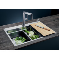 Мийка для кухні Blanco Solis 340/180-IF / A з просторою чашею і майданчиком під змішувач. Модель з нержавіючої сталі має плоский кант і призначена для..